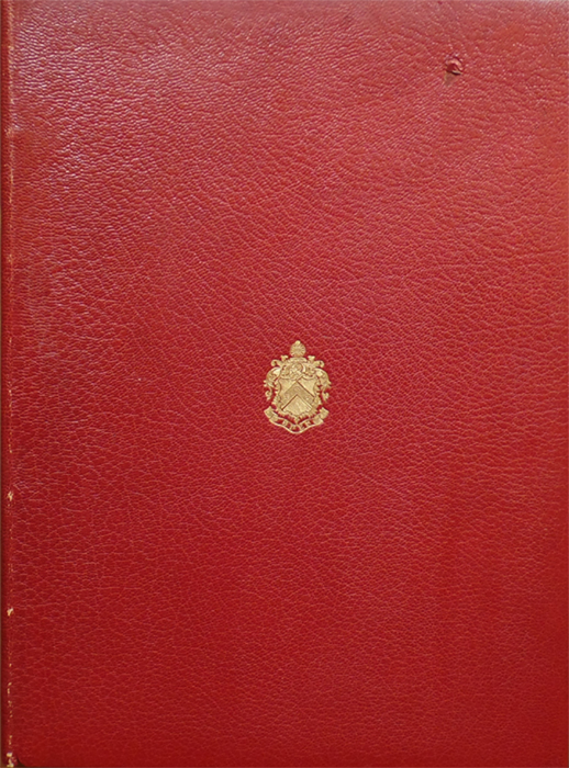 Upper cover stamped in gilt with a crest with the Latin