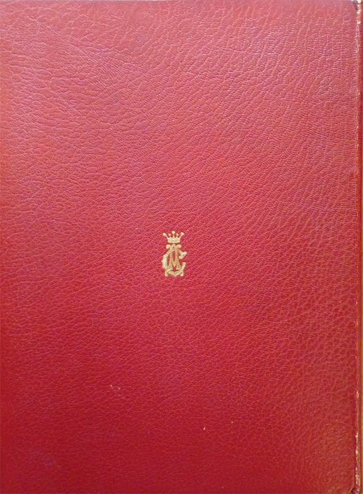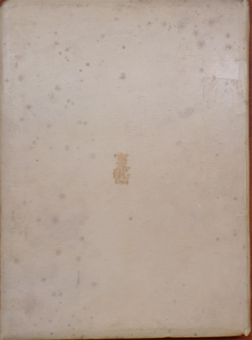 stylized monogram of “A C” surmounted by a crown. Spine stamped in gilt up