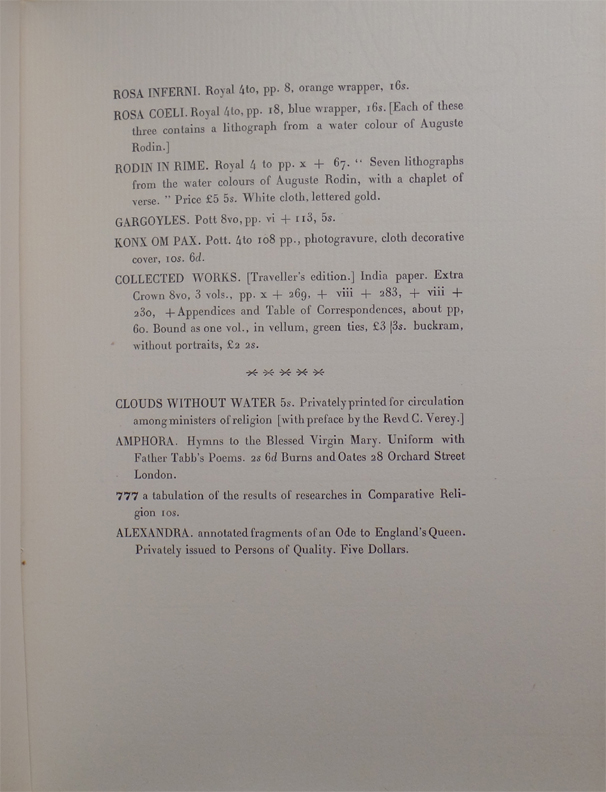 image) Crowley began advertising copies of Alexandra for sale in a Walter Scott