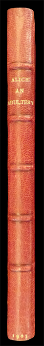 ‘ALICE | AN | ADULTERY’ [between 1st and 2nd raised band] | ‘1905’