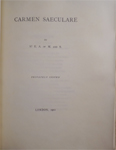 Upper wrapper lettered in black ‘CARMEN SAECULARE | BY