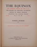 Upper cover lettered in black ‘THE EQUINOX’ within a