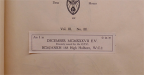 O.T.O., London, 1936. |