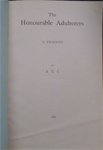 Upper cover lettered ‘The | Honourable Adulterers | A