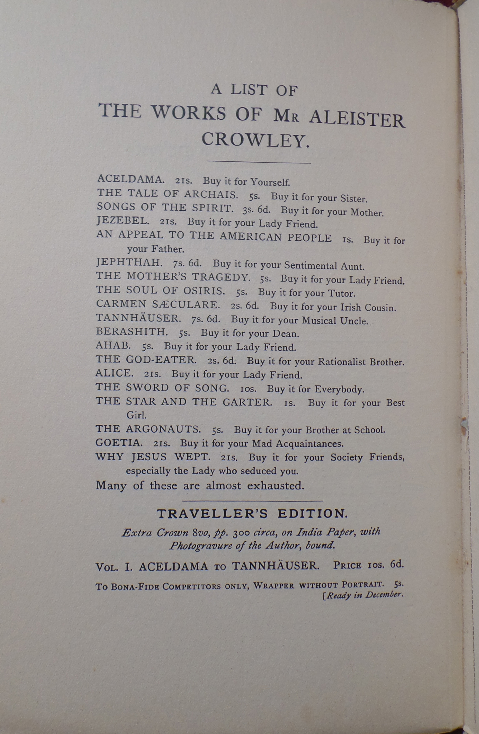17 pages of advertisements + 1 page list of Crowley’s works + 1