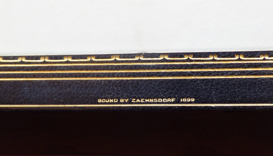 Rebound and signed by Zaehnsdorf in 1899 in panelled black morocco