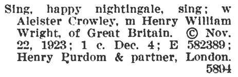Words by Aleister Crowley and music by Henry William Wright.1