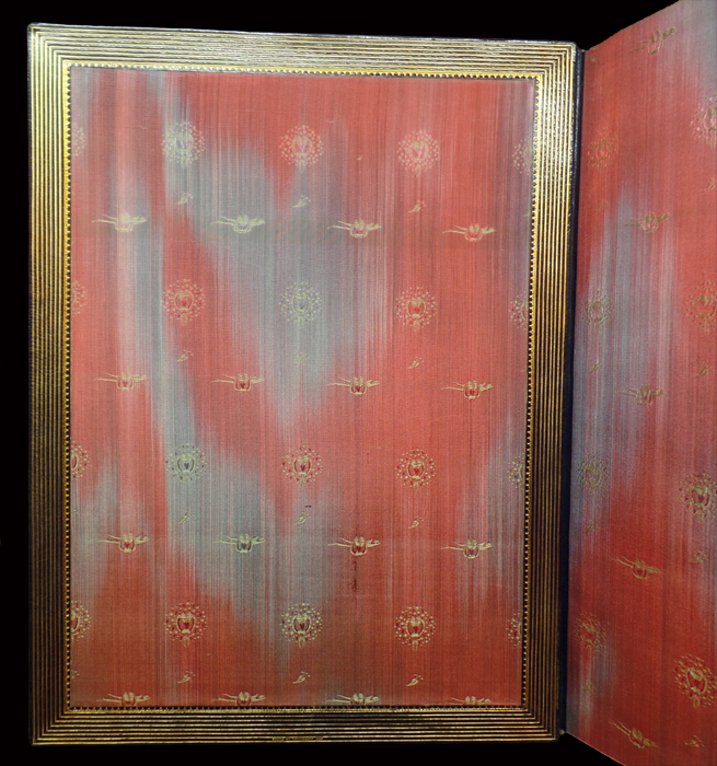 Interior has dentelles stamped in gilt on a doublure-border enclosing a