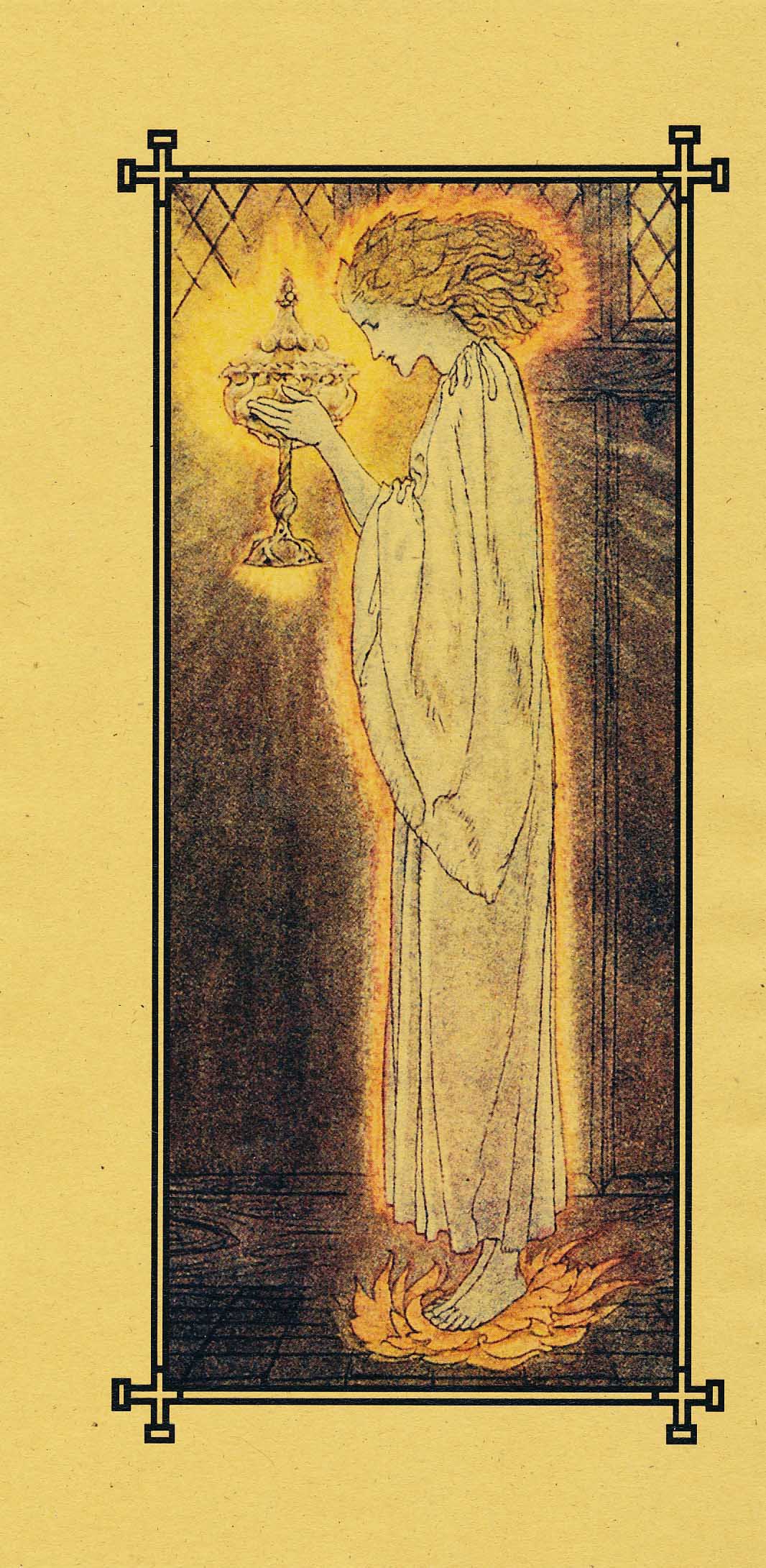 incorporating textured strips. The text is set in an Andalus font and features numerous decorative graphics